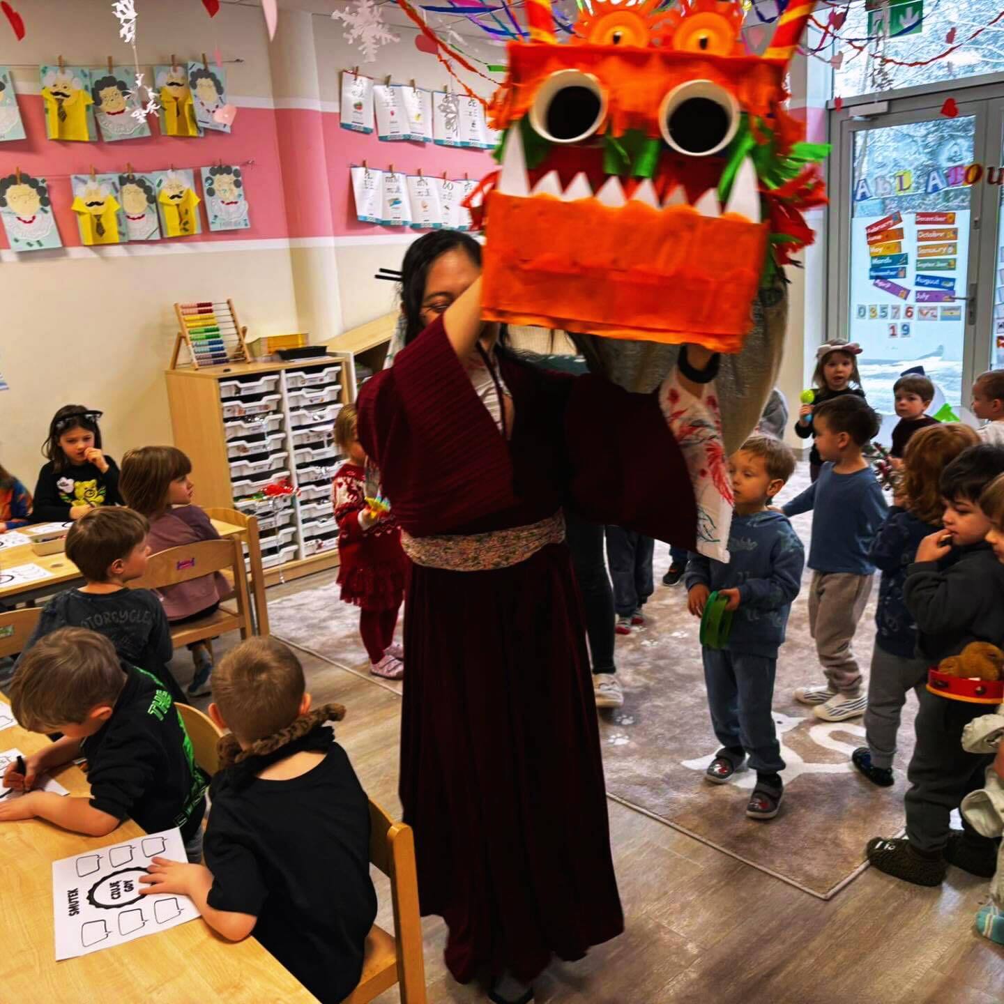 W tym tygodniu nasze wspaniałe dzieci poprowadziły paradę tańca smoka z okazji Chińskiego Nowego Roku Księżycowego (17 lutego)! 🐲🎉 Poznawanie różnych kultur pomaga dzieciom rozwijać się holistycznie i społeczno-kulturowo. Życzymy Wam błogosławieństwa dobrobytu, harmonii i szczęścia w ten Nowy Rok Księżycowy! 🎉🎆🐎