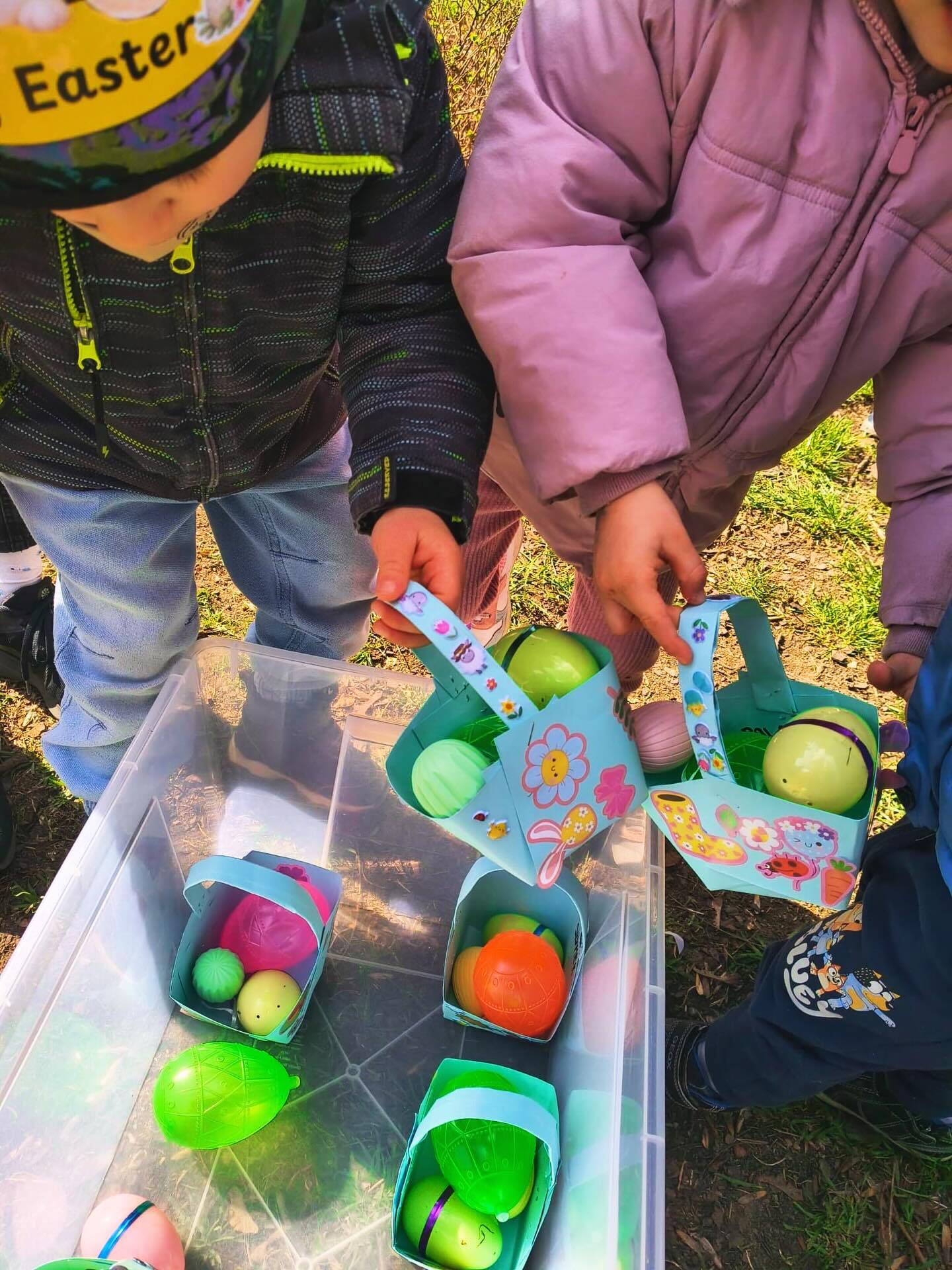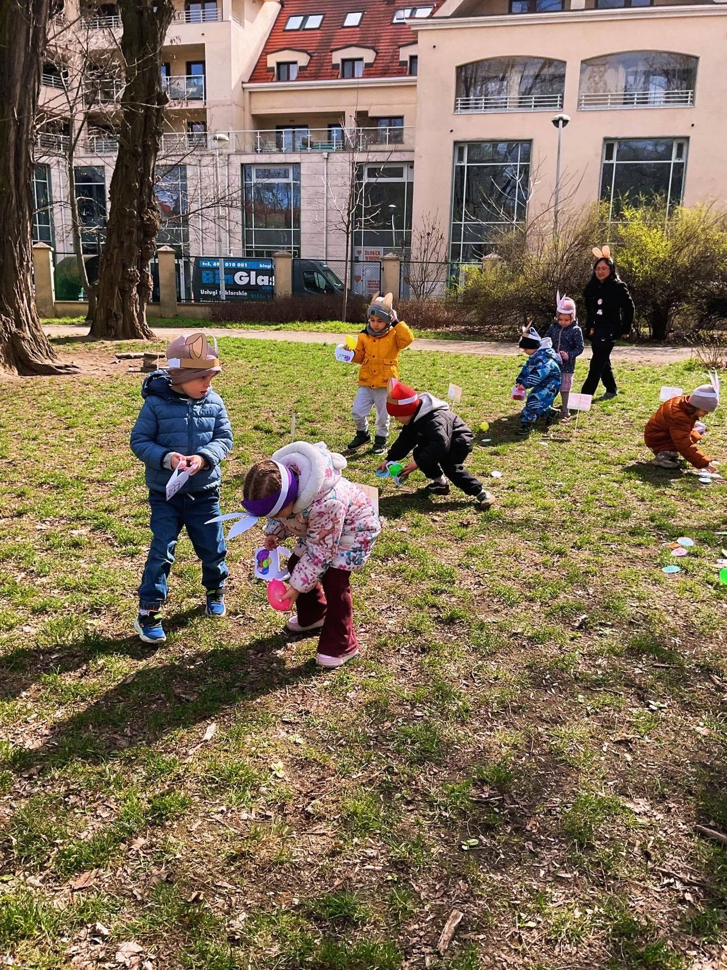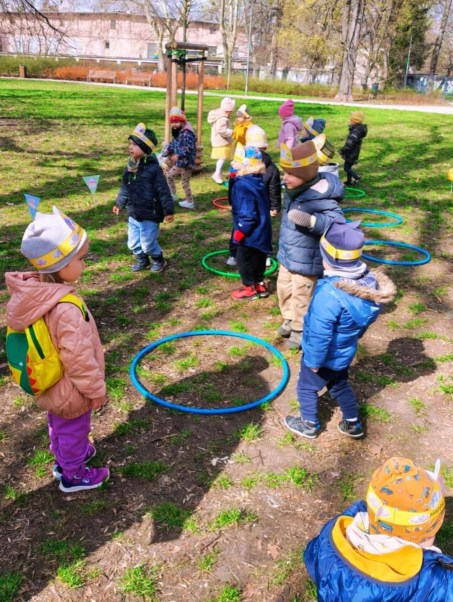 Życzymy naszym dzieciom i rodzicom radosnych rodzinnych świąt Wielkanocnych! 🐣❤️ Na zdjęciach wspaniała przedświąteczna zabawa w naszym parku - Egg Hunt 🥚💛💙💚💜